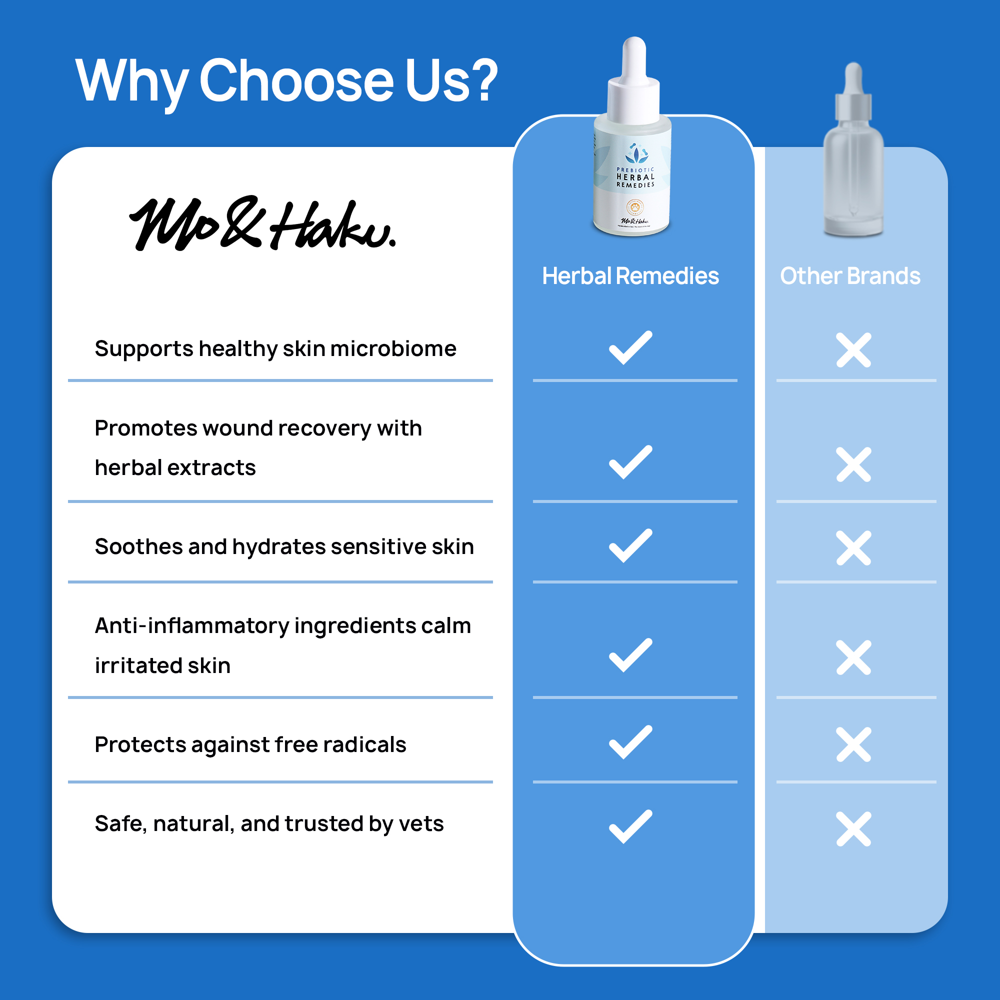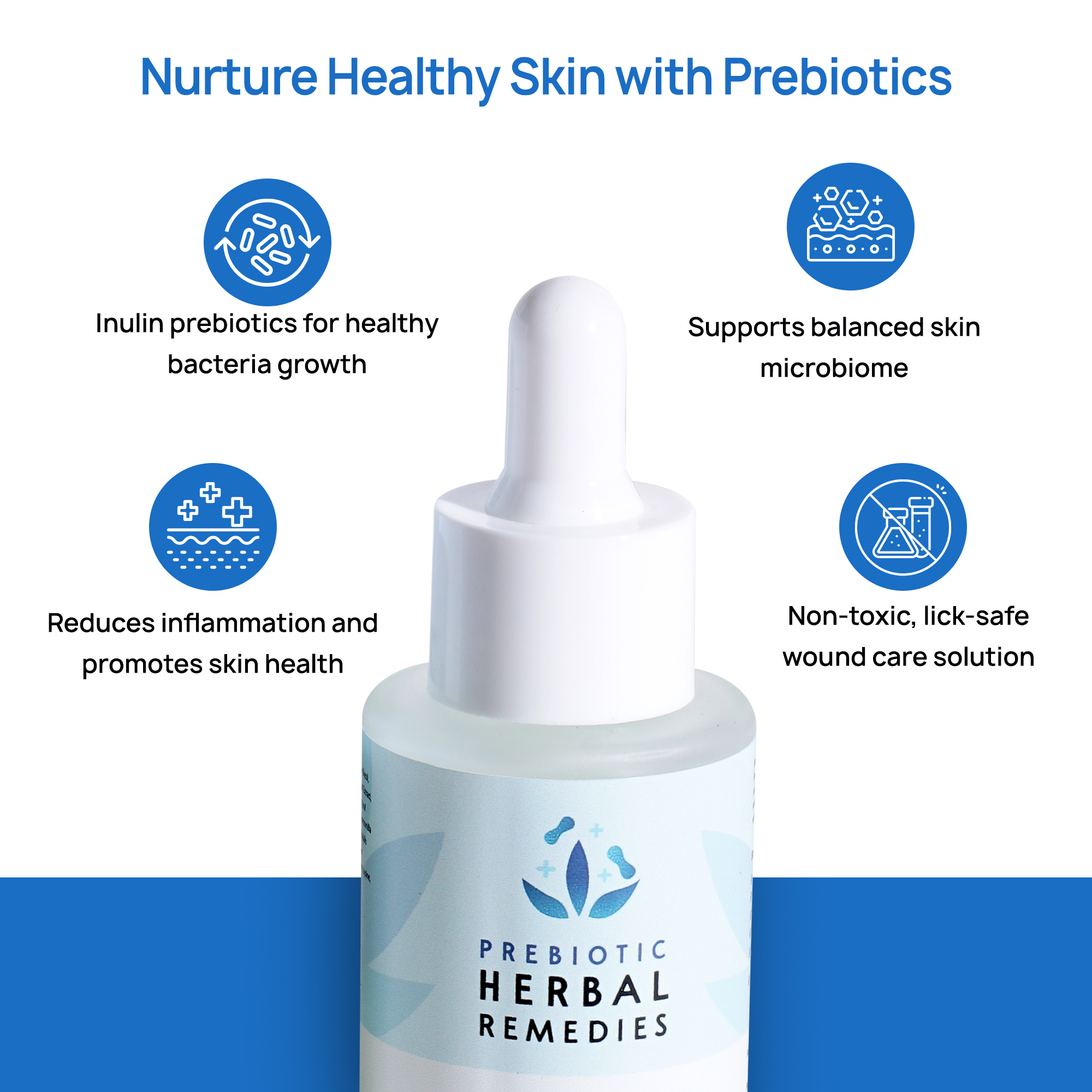 Introduce your dogs and cats to a soothing skin care experience with our Prebiotic Herbal Remedies, a perfect blend of nature and science designed to improve your pet’s skin health and wound healing process.
